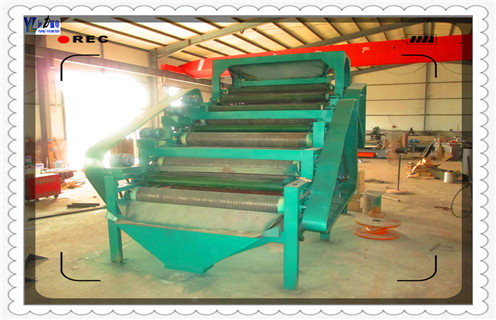 1、锰矿磁选机皮带选用超强磁辊计划,两道分选,适用于分选磁性较弱的矿藏,如褐铁矿、锰矿,分选今后可进步10到30个档次。